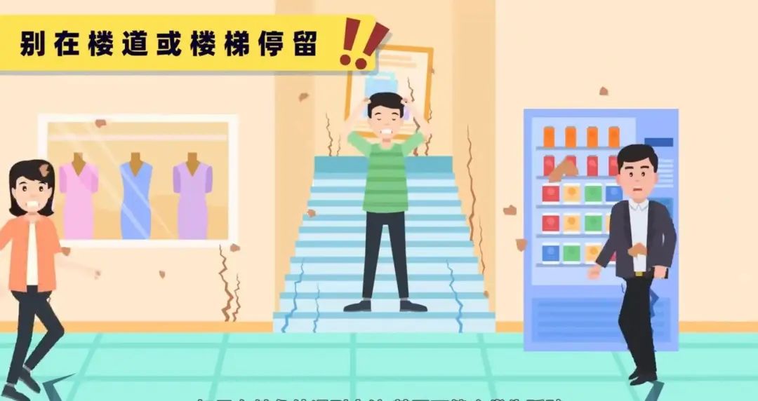 別坐電梯:強震可能導致停電甚至樓體晃動、變形,一旦電梯發生故障或卡在樓層間,人們很容易被困住,逃生難度加大。