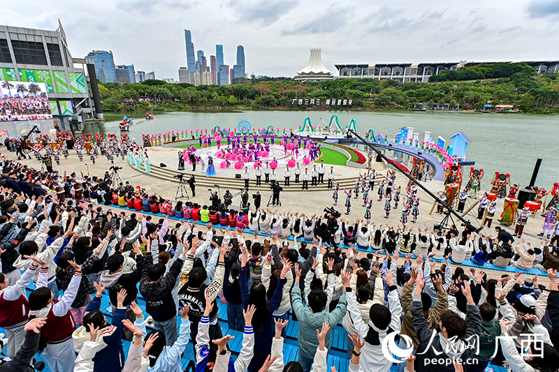 “唱山歌嘞,這邊唱來,那邊和……”3月31日,一曲曲悠揚的山歌在南寧市民歌湖畔迴盪,一場傳統與科技碰撞的文化熱潮就此掀起,2025年“廣西三月三·八桂嘉年華”開幕式暨全國“四季村歌”活動啓動儀式在南寧市民歌湖盛大舉行。