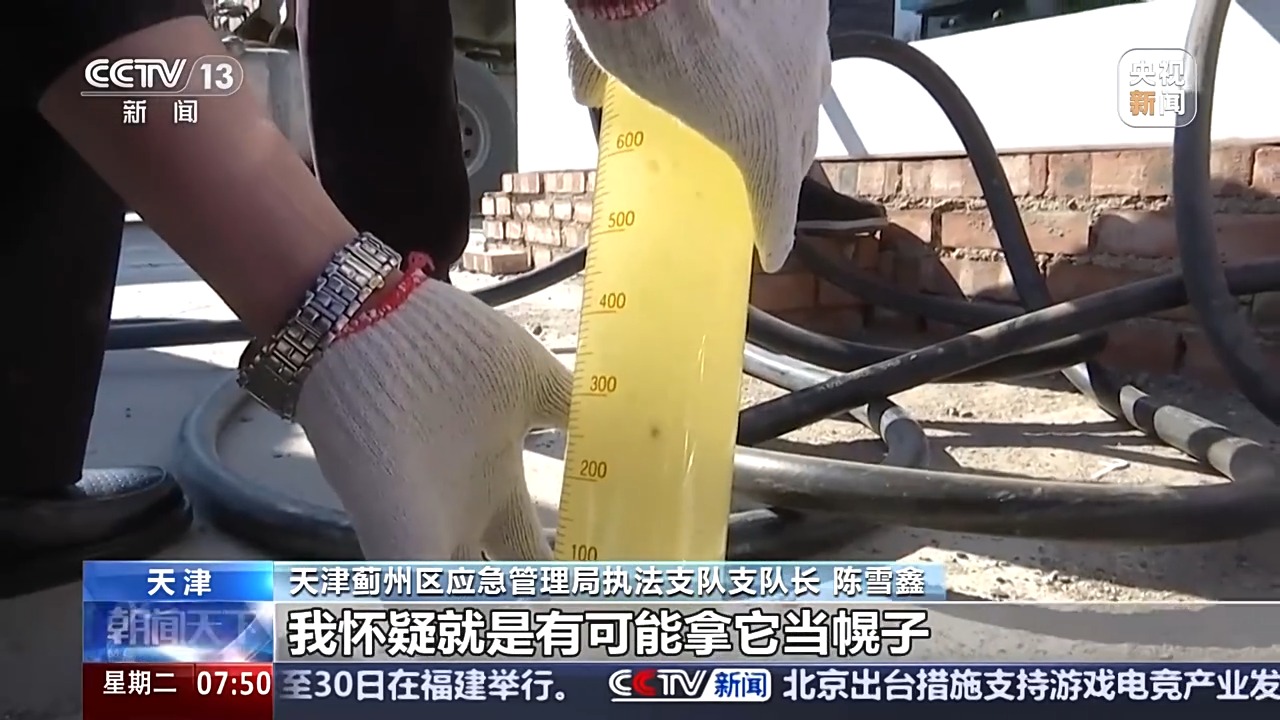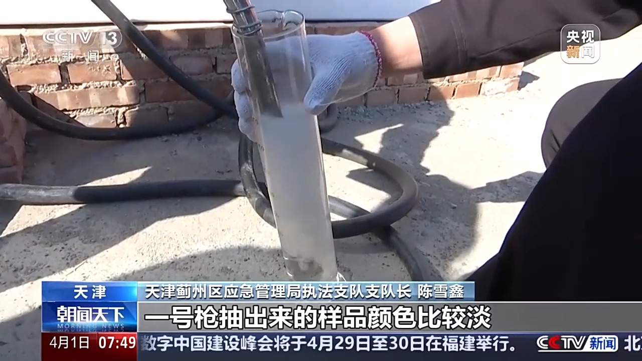 *天津薊州區應急管理局執法支隊支隊長 陳雪鑫:*一號槍抽出來的樣品顏色比較淡,二號槍是一種黃色的液體,沒有那種刺激性氣味。我懷疑就是有可能拿它當幌子,作為一個樣子來應付檢查、抽檢,主要是在一號槍售賣。