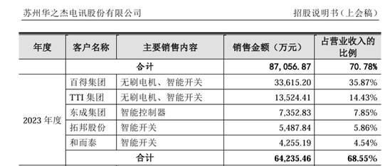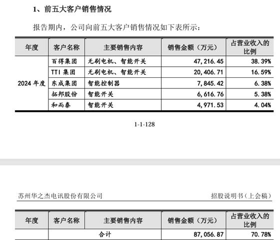 華之傑業績的真實性和信披的可靠性遭受質疑的重要原因之一是多處“數據打架”。招股書顯示,2023年和2024年,華之傑智能開關、無刷電機的總銷售額分別為5.38億元和7.35億元,但同期前五大客户對這兩類產品的採購額卻高達5.69億元和7.92億元,顯著超過公司總銷量。至於銷售額與客户採購額“倒掛”的原因是什麼?本網記者發函求證,但公司未予回應。