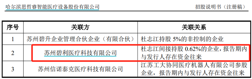 此外,根據招股書披露,思哲睿的董事長杜志江,還間接投資了一家名為“蘇州碧利醫療科技有限公司”的公司,而且在2020年還由思哲睿向這家公司借出資金500萬元。