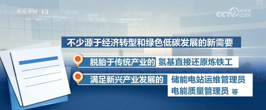 綠色是新職業的一大“標籤”。國家職業分類大典中標註的綠色職業已有134個,佔職業總數的8%。不少源於經濟轉型和綠色低碳發展的新需要,如脱胎於傳統產業的氫基直接還原鍊鐵工、滿足新興產業發展的儲能電站運維管理員、電能質量管理員等。