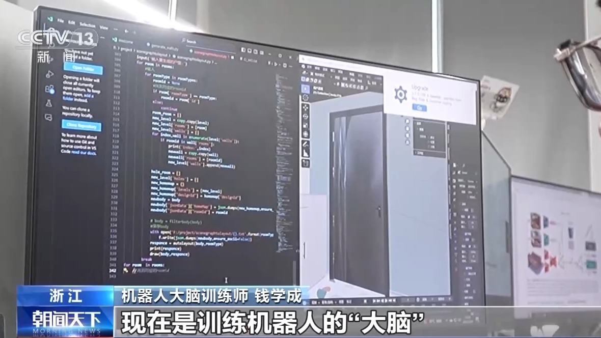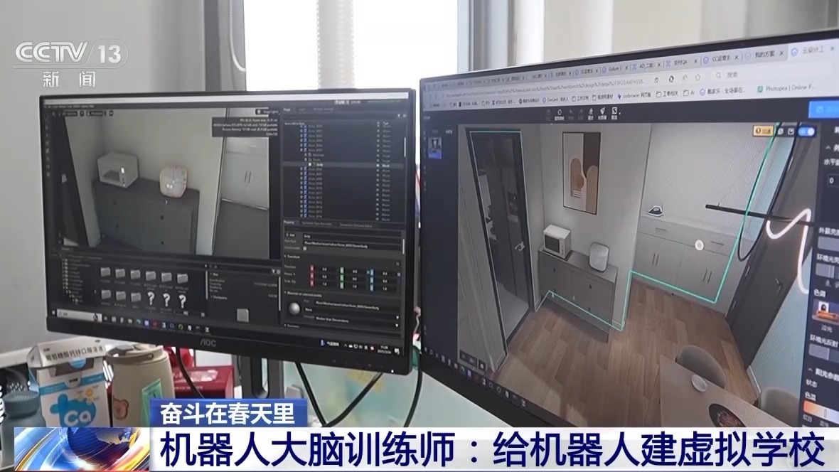 “如何抓取透明玻璃杯?”“用多大力氣可以打開冰箱門?”錢學成告訴記者,這些人類的操作,對機器人來説,卻是一件難事,不僅要有靈活的肢體,還需要在物體識別、力度把控等認知層面反覆訓練,才能在現實生活中完成任務。而機器人大腦訓練師的工作就是負責打造各種訓練場景,錢學成把自己的工作比喻成給機器人建學校。