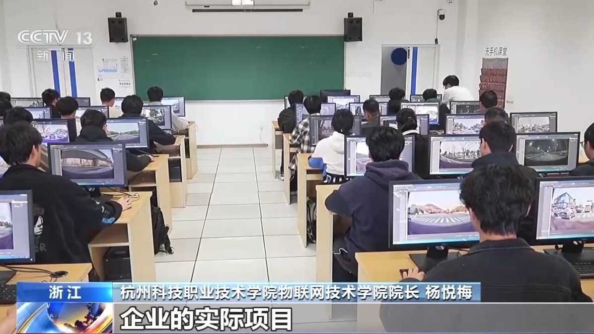 *杭州科技職業技術學院物聯網技術學院院長 楊悦梅:*我們跟企業共建了人工智能開發的課程。在企業崗位脱產鍛鍊過的老師,跟企業導師共同來進行課程教學,學生在課堂上做企業的實際項目。