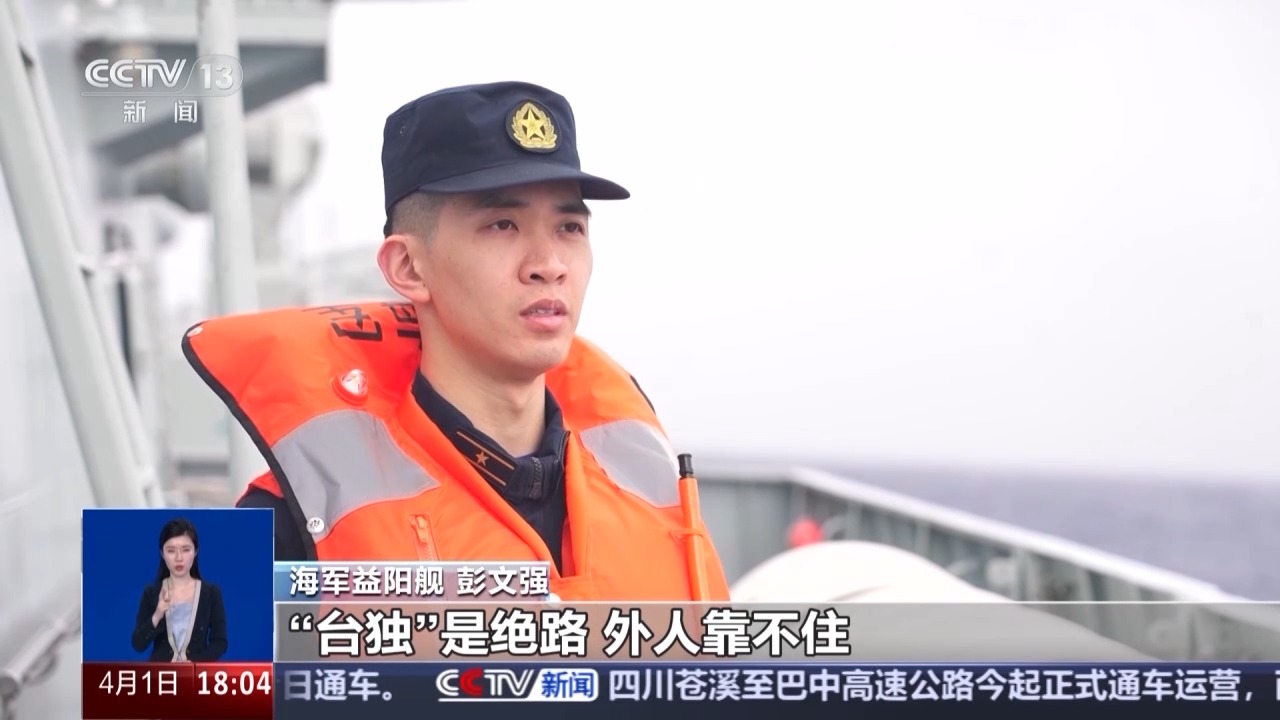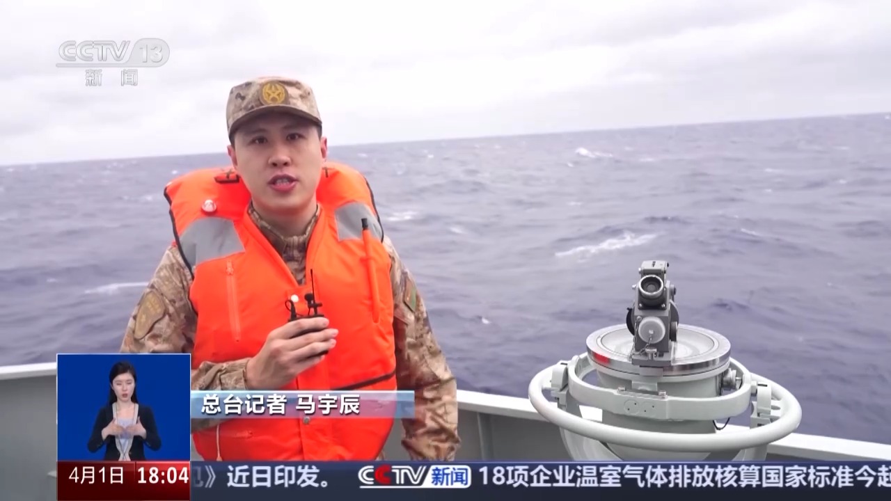 *總枱記者 馬宇辰:*現在是4月1日上午7點30分,我正跟隨海軍益陽艦編隊在台島東部海域執行破限進逼與執法管控任務。今天海上能見度在5海里以上,浪高在3米左右,編隊各艦艇正密切協同,按照戰鬥編組,全速破浪前進。