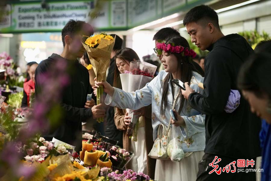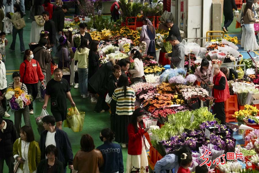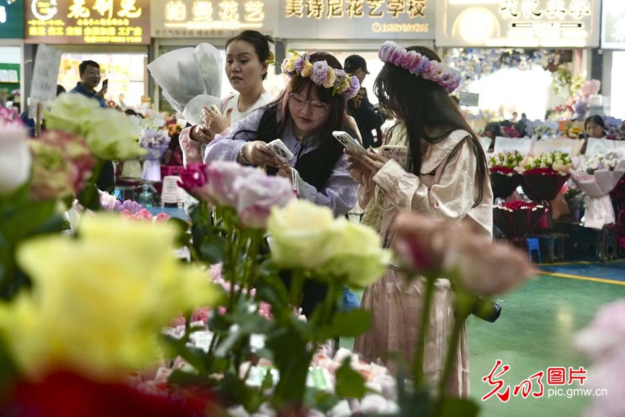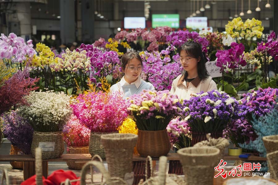 2025年3月30日,雲南昆明斗南花市,顧客在挑選鮮花。(光明網記者 趙金悦攝/光明圖片)