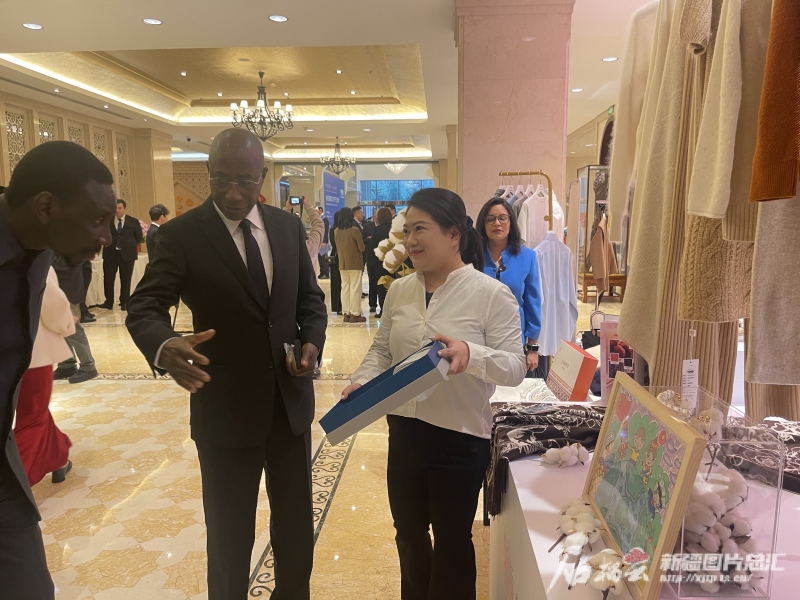 有關國家駐華使節對新疆特色產品展現出濃厚興趣。石榴雲/新疆日報記者 劉翔攝