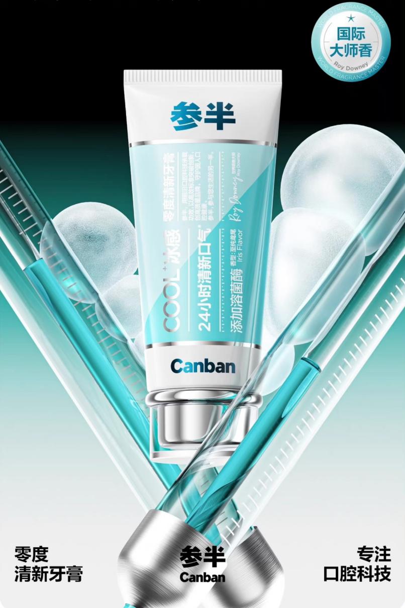 參半口腔自2018年創立以來,發展勢頭迅猛,其牙膏產品矩陣豐富多樣,涵蓋美白、清新、抗敏、護齦等多個細分領域,擁有益生菌(SP)、溶菌酶、羥基磷灰石、沸石等多個產品系列。去年,參半推出的溶菌酶系列備受市場歡迎,該系列以溶菌酶為核心配方,搭配熱感、清新、雙氟雙鍶抗敏等技術,推出39°熱感、酶可護、酶植清等多款產品,有效解決牙黃、異味等口腔問題。其中,39°熱感牙膏憑藉膏體在口腔內快速發熱的獨特體驗,收穫大量好評,成為爆款產品。此次推出的零度清新牙膏,與39°熱感牙膏形成“早清新晚美白”的冰熱雙感產品組合,進一步完善了參半的口腔護理產品線。