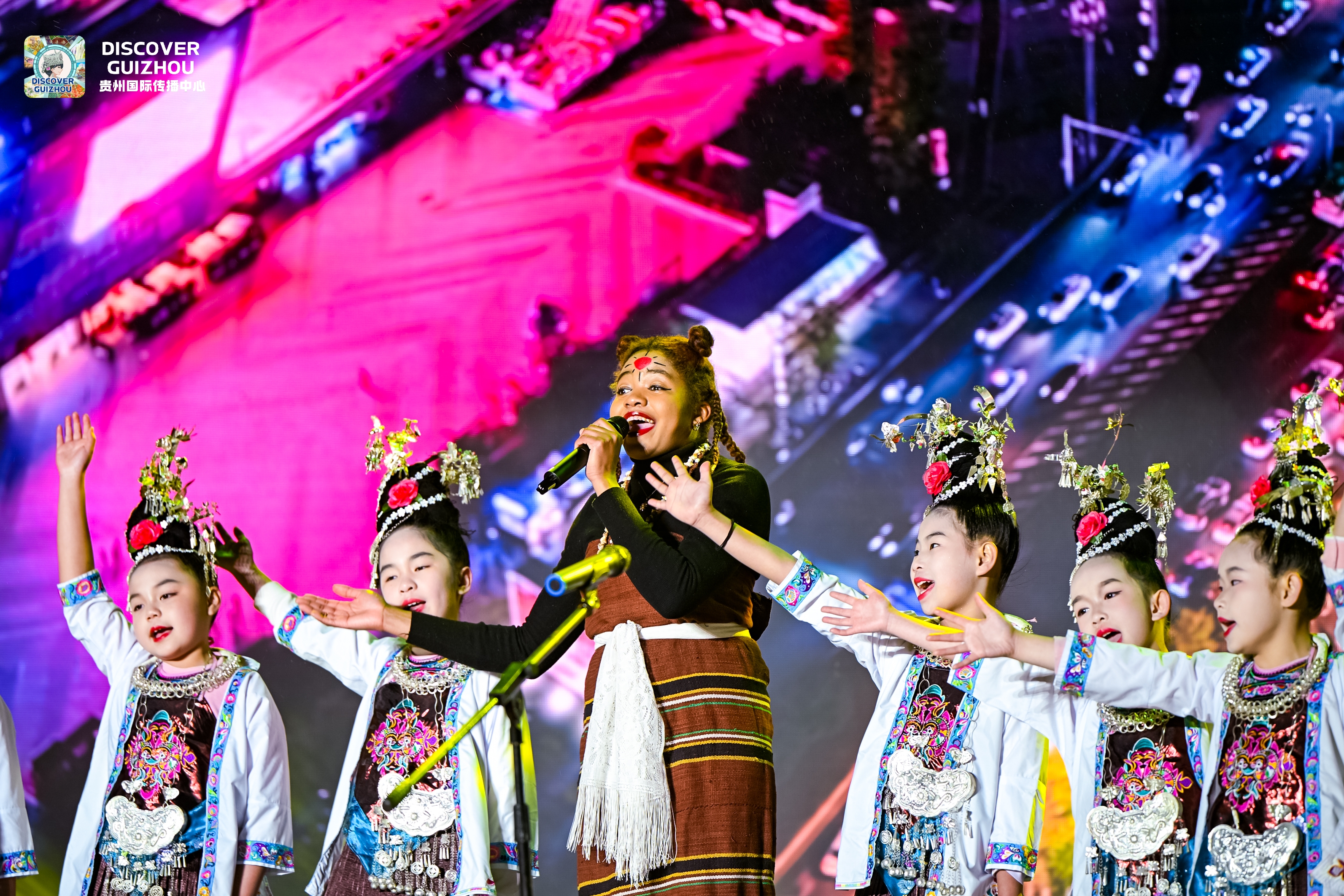 夜櫻搖曳,馬達加斯加留學生簡瑤身着非洲傳統服飾與侗族姑娘跨國合唱起一曲《我在貴州等你》,非洲的熱情奔放與侗族的清麗婉轉共同演繹出一曲跨越山海的動人樂章。“我在貴州快五年了,貴州的美麗,貴州人的熱情都讓我想推薦貴州,讓更多外國朋友來到貴州。”簡瑤説。