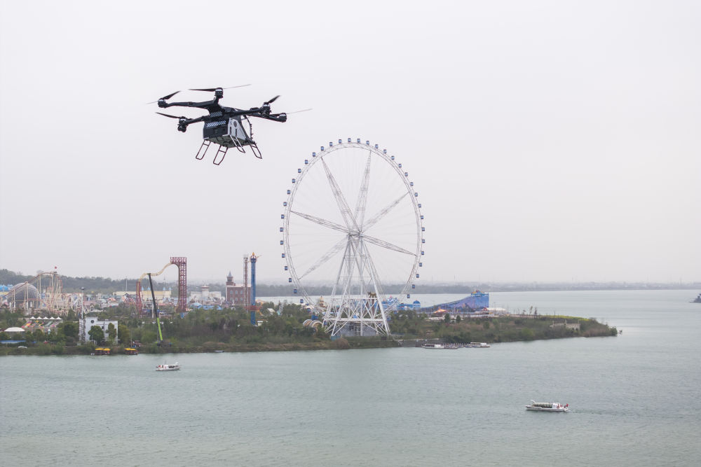 3月27日,小鵬匯天“陸地航母”湖南首飛儀式在湖南省常德市柳葉湖旅遊度假區舉行,模擬了跨湖面飛行的應用場景。