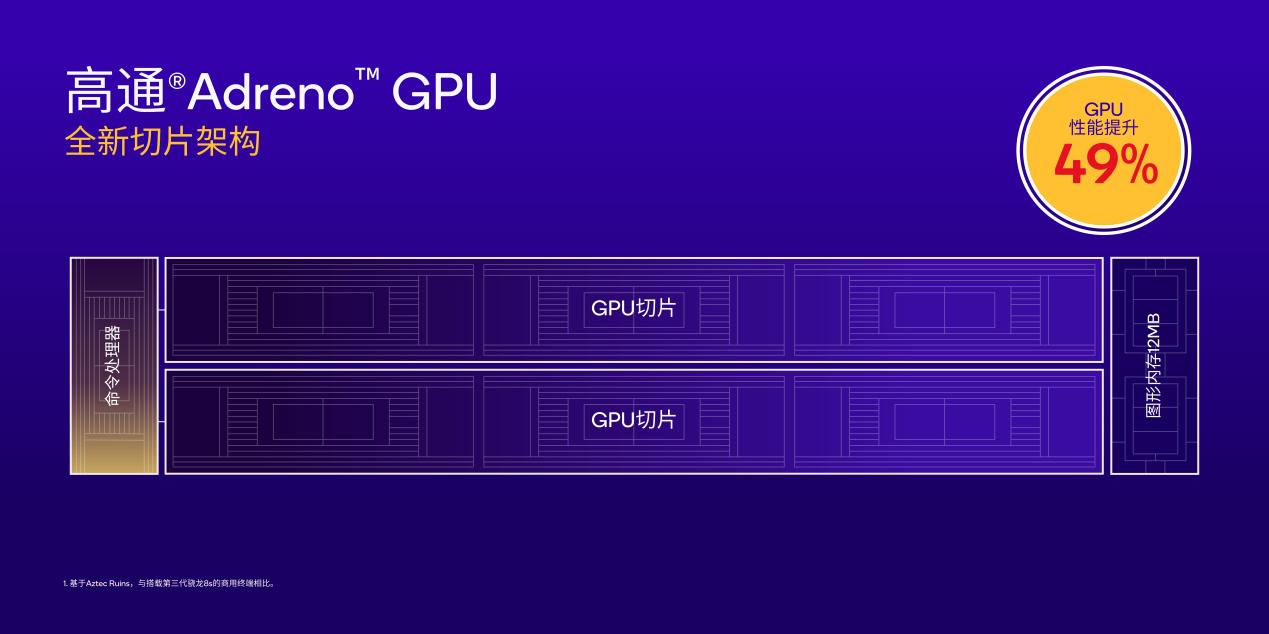 GPU方面,驍龍8s Gen4搭載Adreno 825,與驍龍8至尊版上的Adreno 830為同代產品,加上專門的12MB圖形內存加持,GPU性能較上一代大幅提升49%,能效也提升39%。
