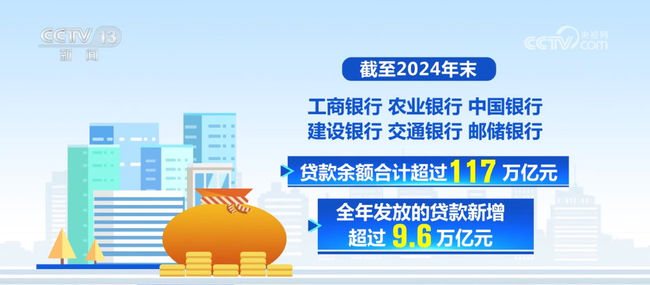 截至2024年末,工商銀行、農業銀行、中國銀行、建設銀行、交通銀行、郵儲銀行六大銀行貸款餘額合計超過117萬億元 ,全年發放的貸款新增超過9.6萬億元 。各家銀行、保險機構還加大了對科技、新質生產力等領域的資金投入。