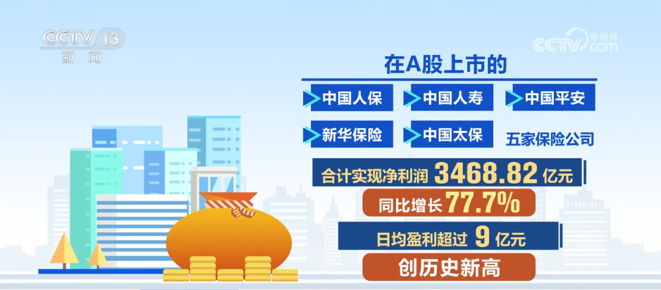從保險業看,在A股上市的中國人保、中國人壽、中國平安、新華保險、中國太保五家保險公司,合計實現淨利潤3468.82億元 ,同比增長77.7% ,日均盈利超過9億元 ,創歷史新高。各家保險機構表示,長期看好中國經濟增長前景。