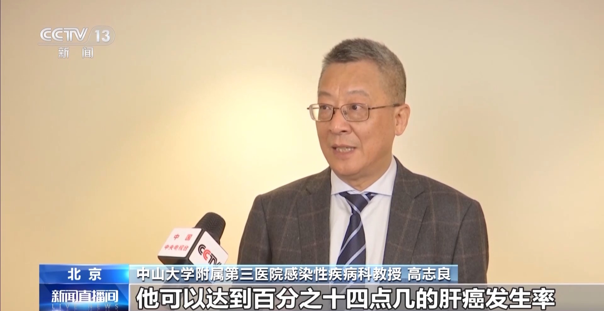 *中山大學附屬第三醫院感染性疾病科教授 高志良:*假如説一個乙肝病人他不去治療,5年之內可以達到14%以上的肝癌發病率,假設到肝硬化了,他不治療的話,可以達到30%左右的肝癌。我們追求臨牀治癒以後,大概5年之內只有1%的肝癌發生。