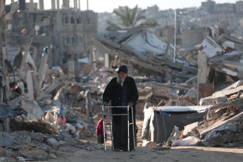 3月22日,一名從加沙地帶北部拜特拉希耶撤離的巴勒斯坦老人經過加沙城。新華社發(阿卜杜勒·拉赫曼·薩拉馬攝)