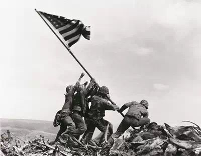 1945年2月23日,美國海軍陸戰隊士兵在硫磺島折缽山上豎起了美國國旗