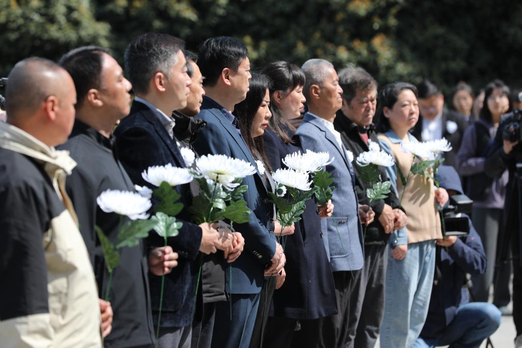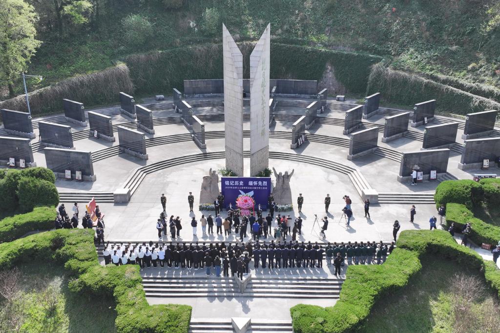4月3日上午,2025年各界人士清明憑弔抗日航空英烈活動在南京航空烈士公墓舉行。新華社記者毛俊 攝