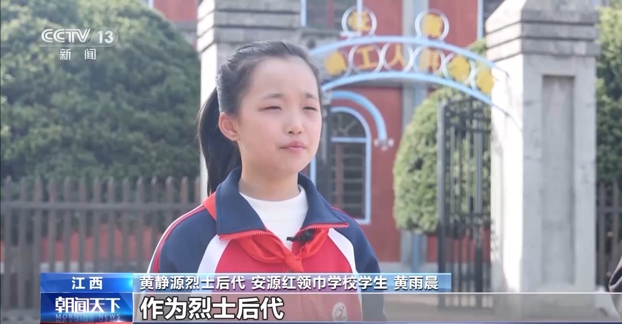 *黃靜源烈士後代 安源紅領巾學校學生 黃雨晨:*作為烈士後代,我深知傳承不是簡單重複歷史,我會用最真摯的方式,讓先烈的精神成為指引我們前行的力量,讓紅色的信仰薪火相傳。