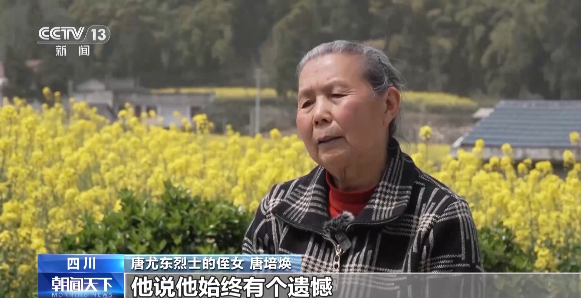 *唐尤東烈士的侄女 唐培煥:*我們父親去世的時候提醒我們,他説他始終有個遺憾,沒見到叔叔的面。