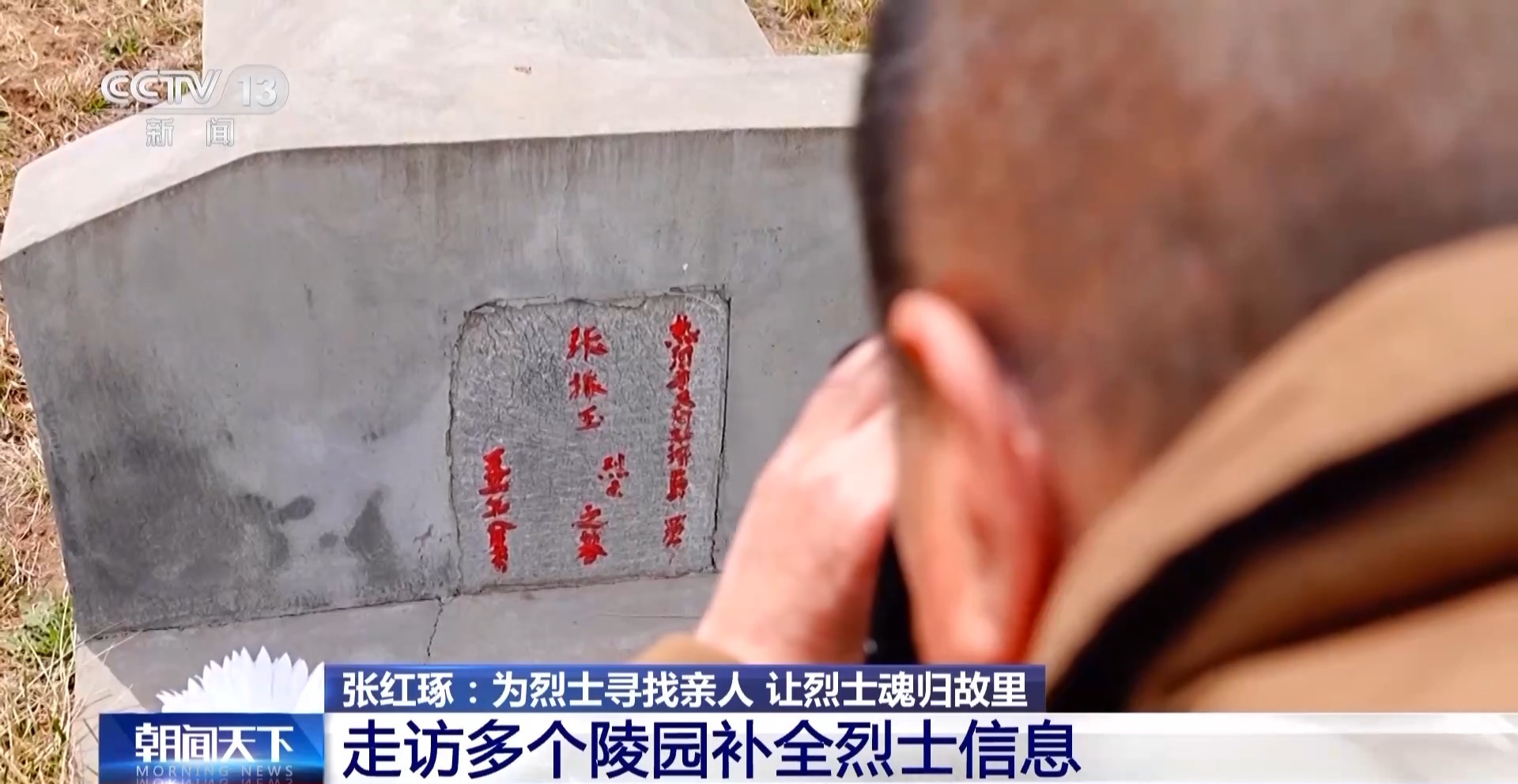 每到一個陵園,他會先跟工作人員確認哪些墓碑沒有烈士親屬祭掃。確認沒有親屬祭掃的,張紅琢就把信息記錄下來。回家後,通過地方誌、烈士英名錄等資料比對核實清楚烈士的身份信息,再通過實地走訪或藉助媒體、社會力量發佈尋親信息,尋找烈士親屬。
