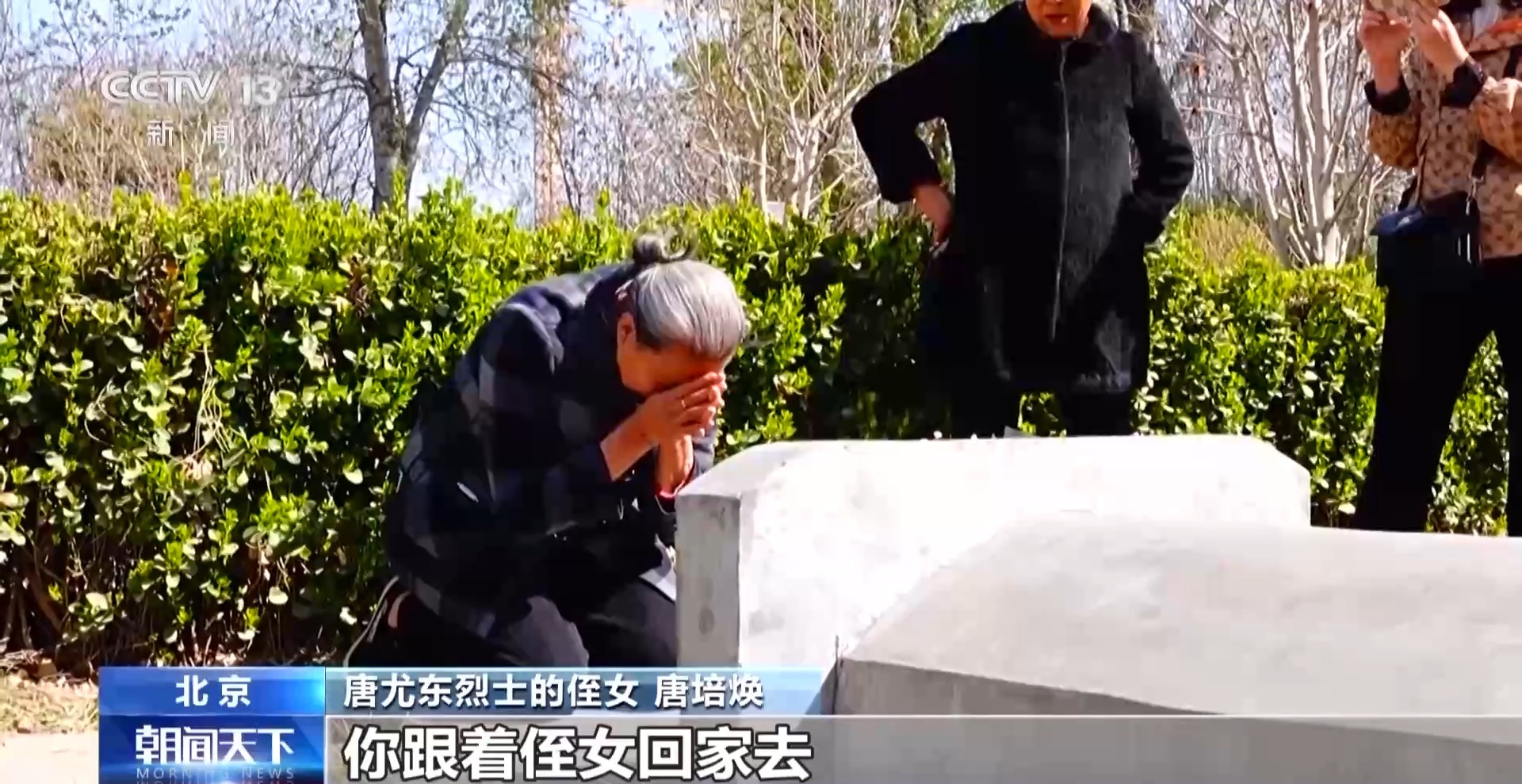 *唐尤東烈士的侄女 唐培煥:*親愛的叔叔,你跟着侄女回家去,一家好團圓。謝謝你用自己的生命,為我們做出了好榜樣。