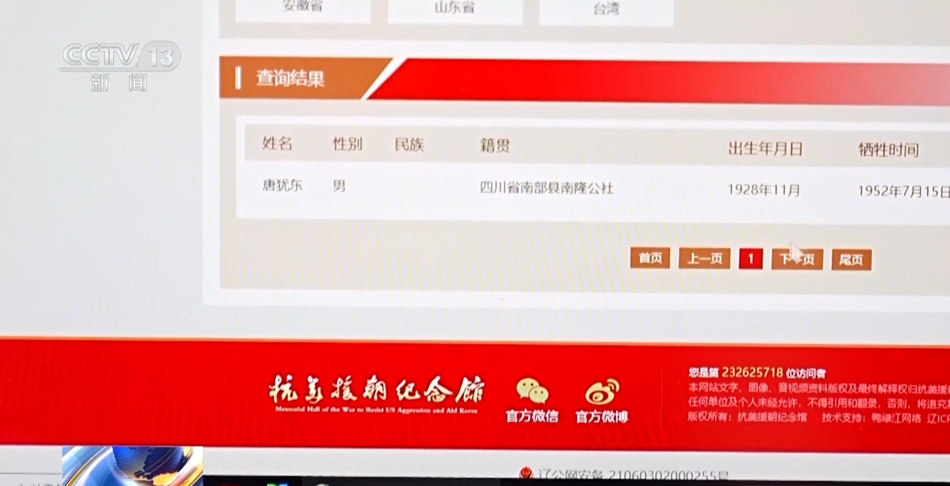 記者聯繫了南充市退役軍人事務局,工作人員查找檔案後發現,確實有位唐猶東烈士1952年在抗美援朝戰爭中失蹤。當地退役軍人事務局的工作人員找到了烈士的侄兒和侄女。唐尤東烈士只有一個哥哥,已經於1999年去世。