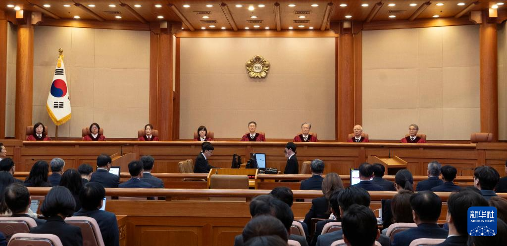 當地時間上午11時許,憲法法院庭審現場座無虛席,被告人尹錫悦缺席。憲法法院代理院長文炯培宣佈,8名法官一致贊成通過國會提交的總統彈劾動議案,尹錫悦即刻被罷免總統職務。