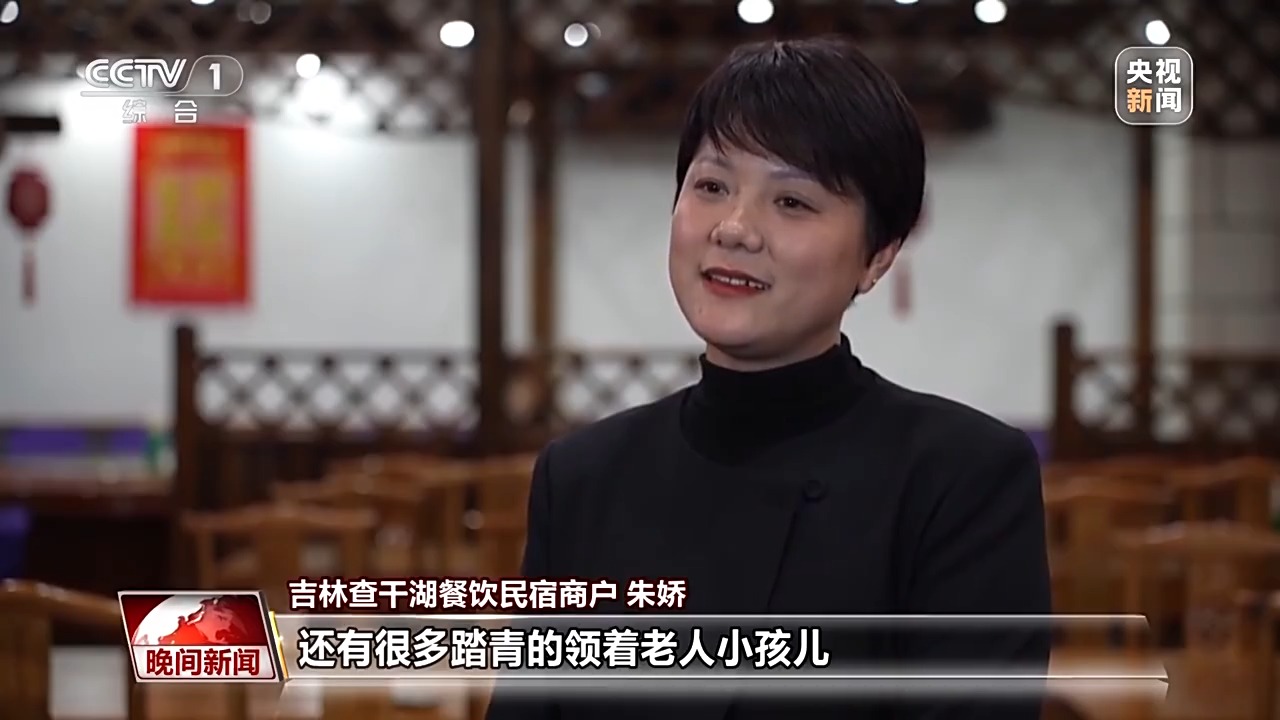 *吉林查干湖餐飲民宿商户 朱嬌:*很多攝影愛好者到查干湖來拍冰面上的候鳥嬉戲,還有很多踏青的領着老人小孩兒到查干湖來遊玩,我們的餐飲訂單量有所上漲。