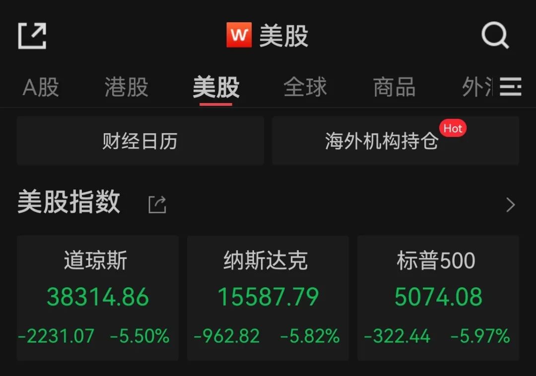 美東時間週五,美股連續第二日重挫,道指大跌逾2200點,美股三大指數跌幅均超5%,納指進入熊市,萬得美國科技七巨頭指數跌5.62%,特斯拉跌超10%,英偉達跌逾7%。