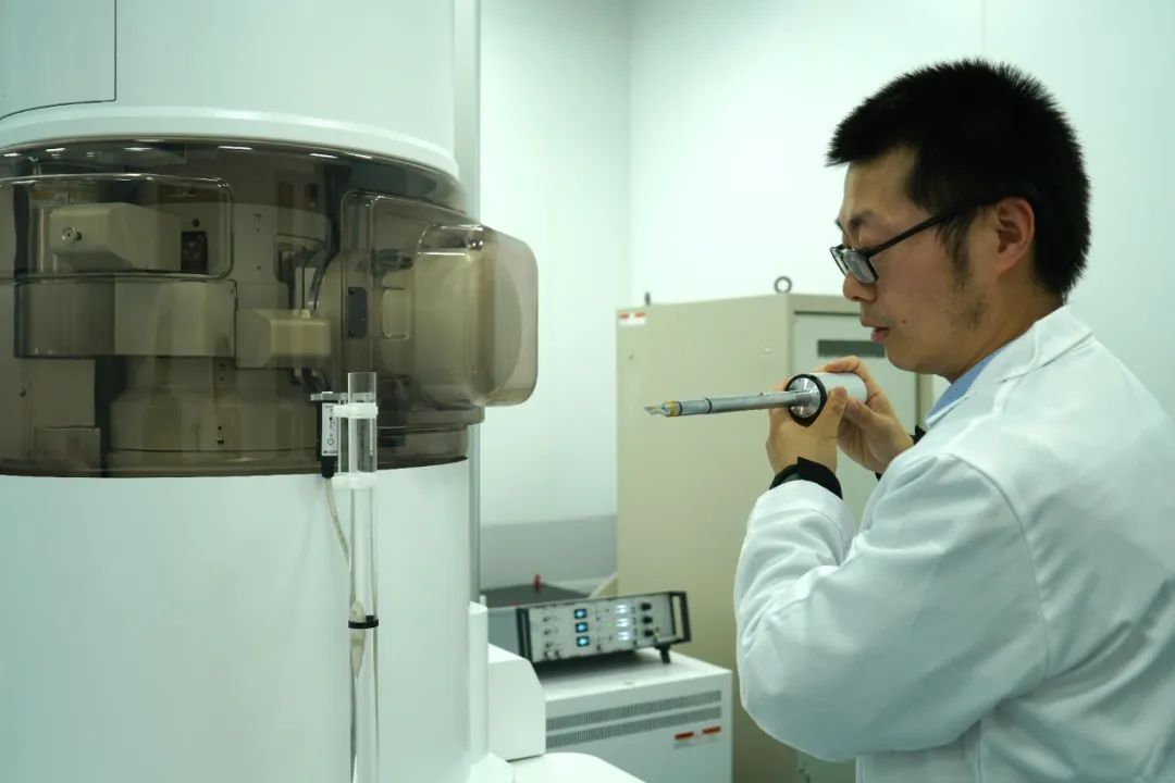 4月2日,在中國科學院金屬研究所瀋陽材料科學國家研究中心實驗室,研究人員準備把加工過的金屬材料樣品放進掃描電鏡,以觀察結構變化。本報記者鄒曉菁攝光明圖片