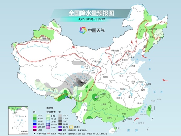 具體來看,中央氣象台預計,今天,黑龍江東南部、吉林東部、新疆沿天山地區、西藏東北部、青海北部和南部、甘肅南部、川西高原中北部等地部分地區有小到中雪或雨夾雪,其中,川西高原北部等地部分地區有大到暴雪。新疆伊犁河谷、西藏東南部、黑龍江西部和南部、吉林中西部、遼寧東部、湖南南部和西部、廣東、廣西、四川盆地、重慶、貴州、雲南大部、台灣島等地部分地區有小到中雨,其中,西藏東南部、四川盆地東南部等地部分地區有大雨。
