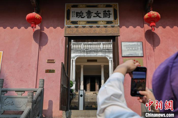 4月4日,“僑”見海南自貿港主題活動走進文昌孔廟,圖為騎樓圖書館吸引活動嘉賓參觀。中新網記者 駱雲飛 攝