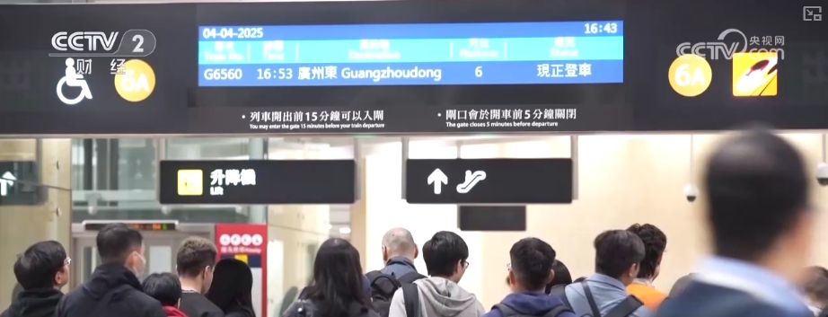 其中,廣州、深圳至香港西九龍的“灣區快線”成為最熱門區間。據瞭解,4月3日至7日,廣深港跨境高鐵預計運送旅客54.5萬人次,日均客運量達10.9萬人次,同比增長15%。