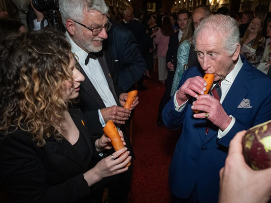 澳大利亞“7news”網站稱,即便熱愛園藝和植物是查爾斯三世眾所周知的一個愛好,但在温莎城堡舉行的社區音樂家招待會上,看到他用胡蘿蔔做成的豎笛進行演奏還是有些“意外”。上述表演結束後,樂團一名成員對查爾斯三世説,他們“通宵熬夜做了這個(胡蘿蔔豎笛)”。