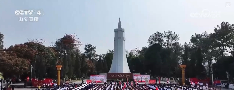 在廣西百色起義紀念碑前,來自社會各界黨員幹部、學生代表、武警官兵及羣眾共1000餘人,以敬獻花籃、默哀追思、重温誓詞等形式,深切緬懷革命先烈,傳承紅色基因,賡續百色起義精神。