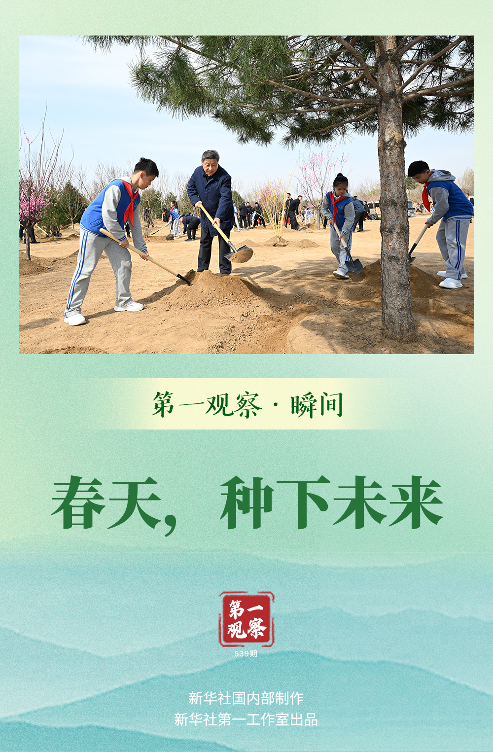 今天種下新綠,小小樹苗將長成參天大樹、連片成林,祖國大地綠意盎然、生機勃發。今天播撒希望,孩子們終將成為社會發展的棟樑之才,強國建設、民族復興更有接續奮鬥的力量。