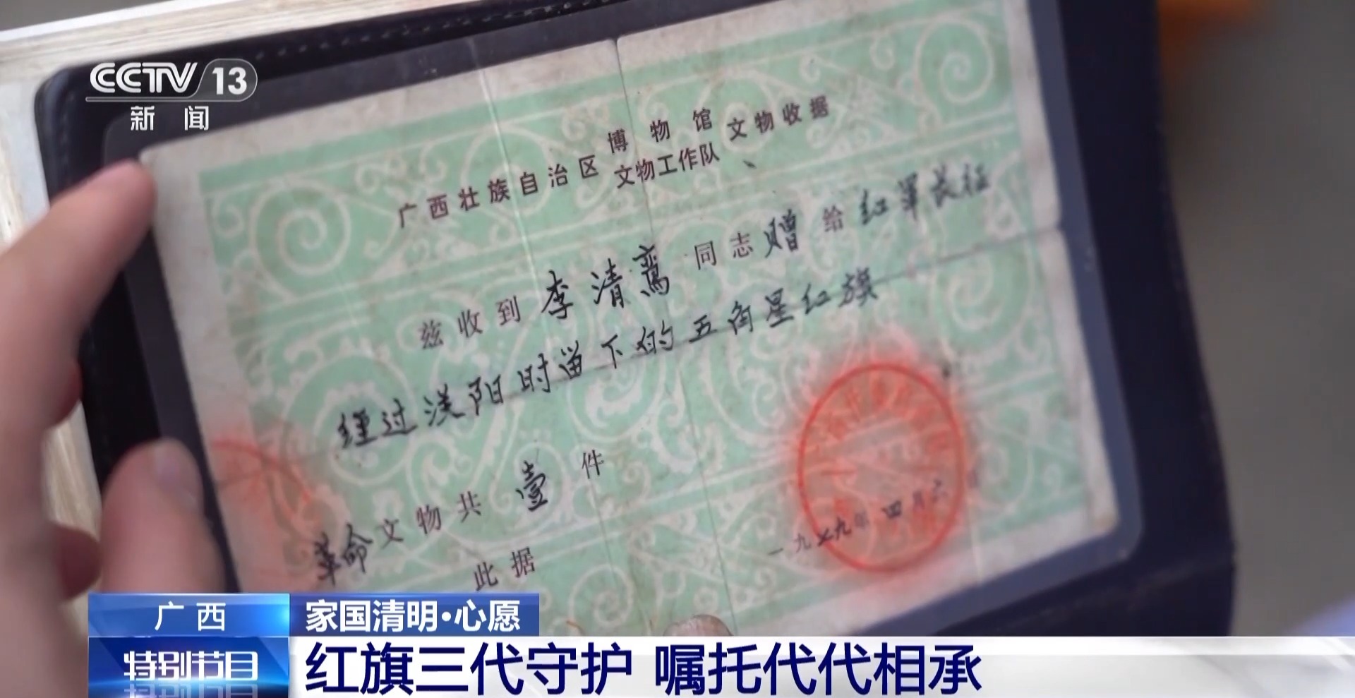 90多年前,中央紅軍長征途經廣西灌陽時,一名紅軍戰士將一面紅旗交給灌陽縣村民黃和林保管,説“革命勝利之後再來取”。總枱記者瞭解到,直到今天,黃和林的後人仍在靜待着這個承諾。