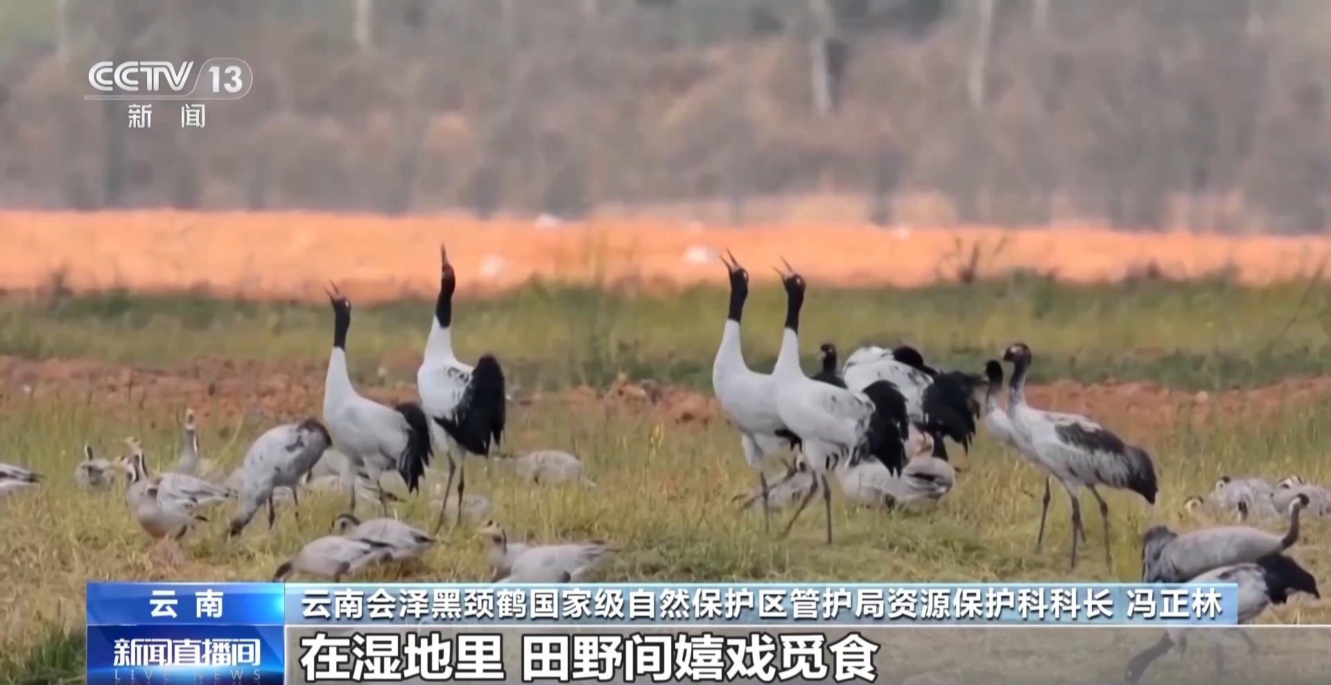 黑頸鶴是國家一級保護野生動物,作為黑頸鶴的主要越冬地,雲南各處黑頸鶴棲息地生態環境持續改善,讓遠道而來的鶴羣“生活無憂”。