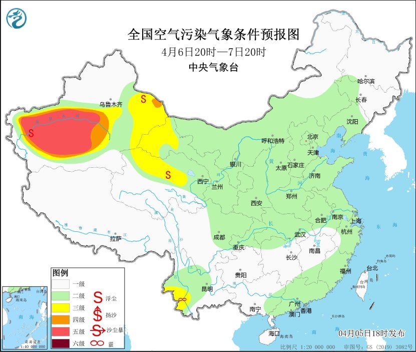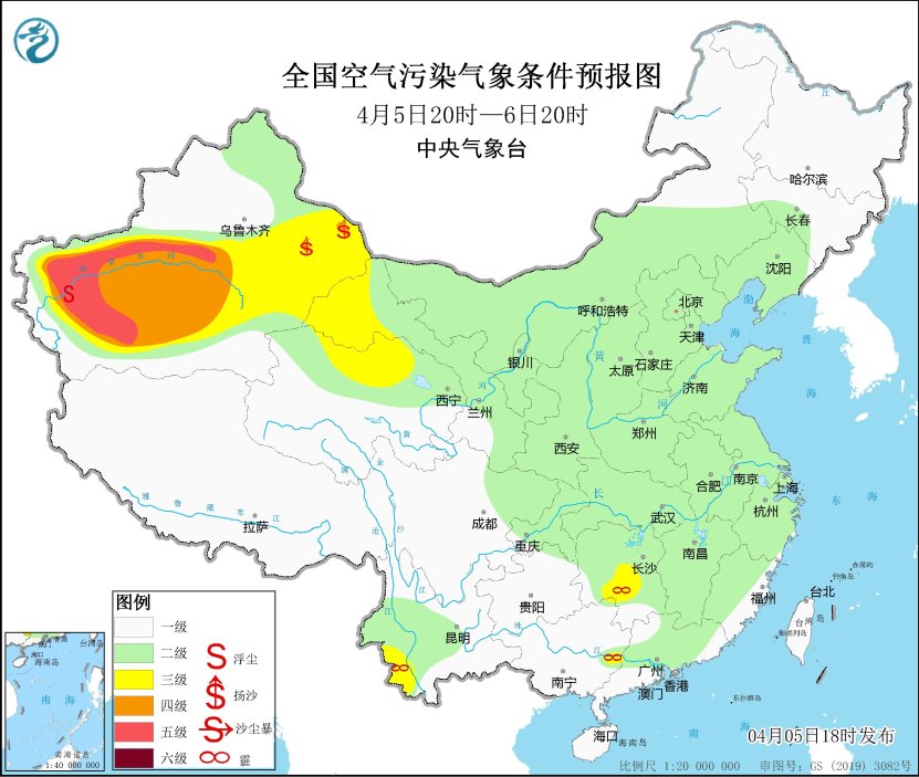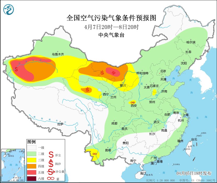 未來一週,全國大部地區大氣擴散條件較好,無明顯霾天氣。但受大風影響,5日夜間至9日,新疆東部和南部、內蒙古西部、甘肅中西部、寧夏、青海北部等地的部分地區有揚沙或浮塵天氣,局地有沙塵暴。