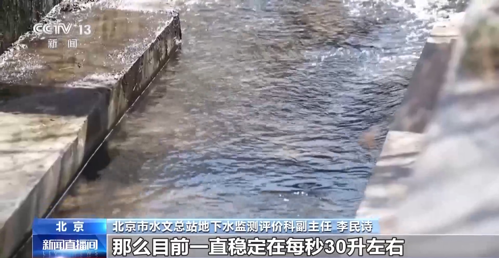 *北京市水文總站地下水監測評價科副主任 李民詩:*從監測數據來看,陳家莊泉復湧以後,它的流量相對來説是非常穩定的,目前一直穩定在每秒30升左右。