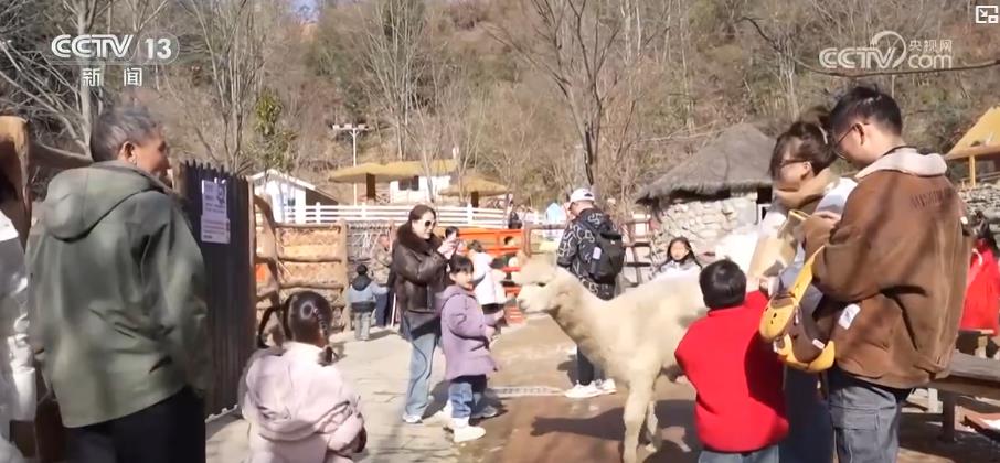 在江西修水鹿鳴谷景區,賞花遊、萌寵特色遊等休閒活動,吸引了大批遊客踏青體驗。温順的梅花鹿三五成羣,悠閒散步,呆萌的羊駝來回穿梭,與周邊自然山水相映成趣。