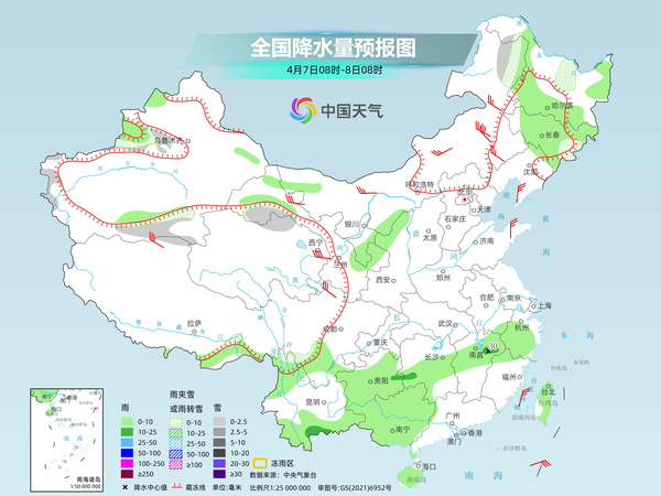 昨天,我國的降水分佈仍維持着北少南多的分佈格局,此外,雲南多地出現明顯降雨,局地還出現了暴雨。監測顯示,西藏中部和東北部、青海東南部、川西高原北部等地部分地區出現小到中雪或雨夾雪;新疆伊犁河谷、雲南南部等地部分地區出現中雨或大雨,雲南紅河和西雙版納局地暴雨。