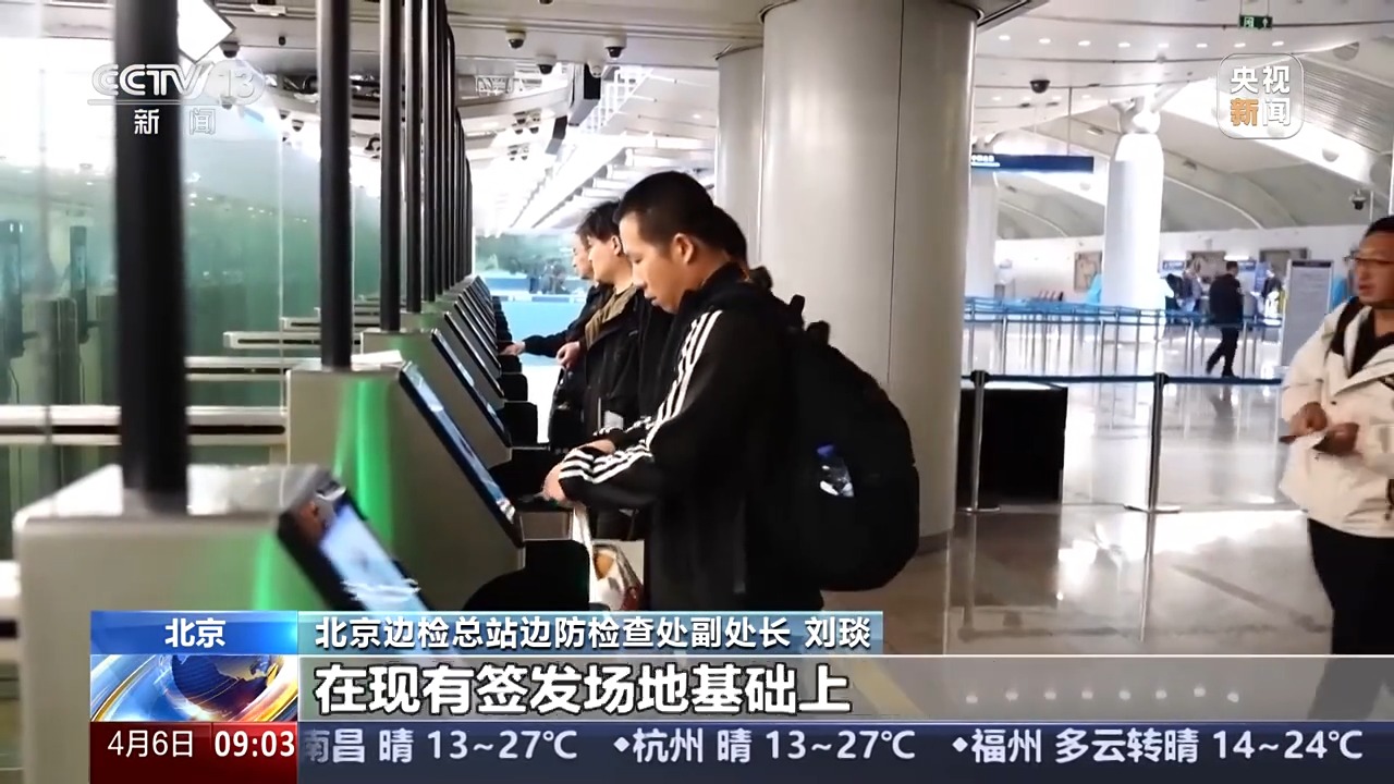 *北京邊檢總站邊防檢查處副處長 劉琰:*我們在首都國際機場和大興國際機場試點優化臨時入境許可簽發流程,在現有簽發場地基礎上,新增臨時入境許可專用通道,實現在同一條通道既簽發臨時入境許可又辦理邊檢入境手續。