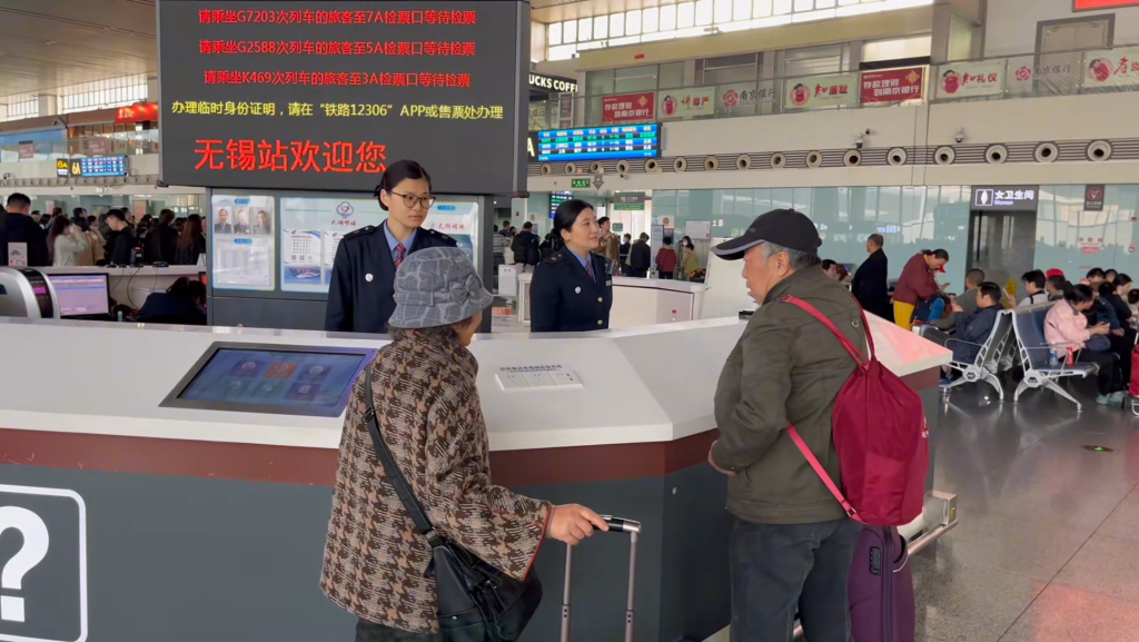 無錫站工作人員為銀髮旅客解答引導。高鵬 供圖