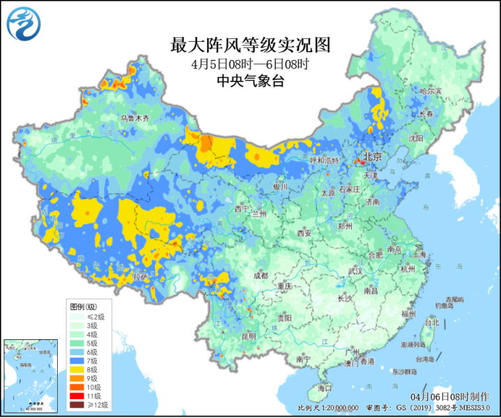 昨天,北方地區風力較大,新疆北部和南疆盆地、西北、華北西部和北部及內蒙古、山東等地部分地區出現6~8級陣風,局地9~10級,新疆和西北部分地區出現揚沙或浮塵天氣;全國大部地區降水較弱,青藏高原東部等地出現雨雪天氣,雲南南部局地出現大到暴雨。此外,黑龍江、吉林、江西、福建及四川盆地等地部分地區出現大霧。