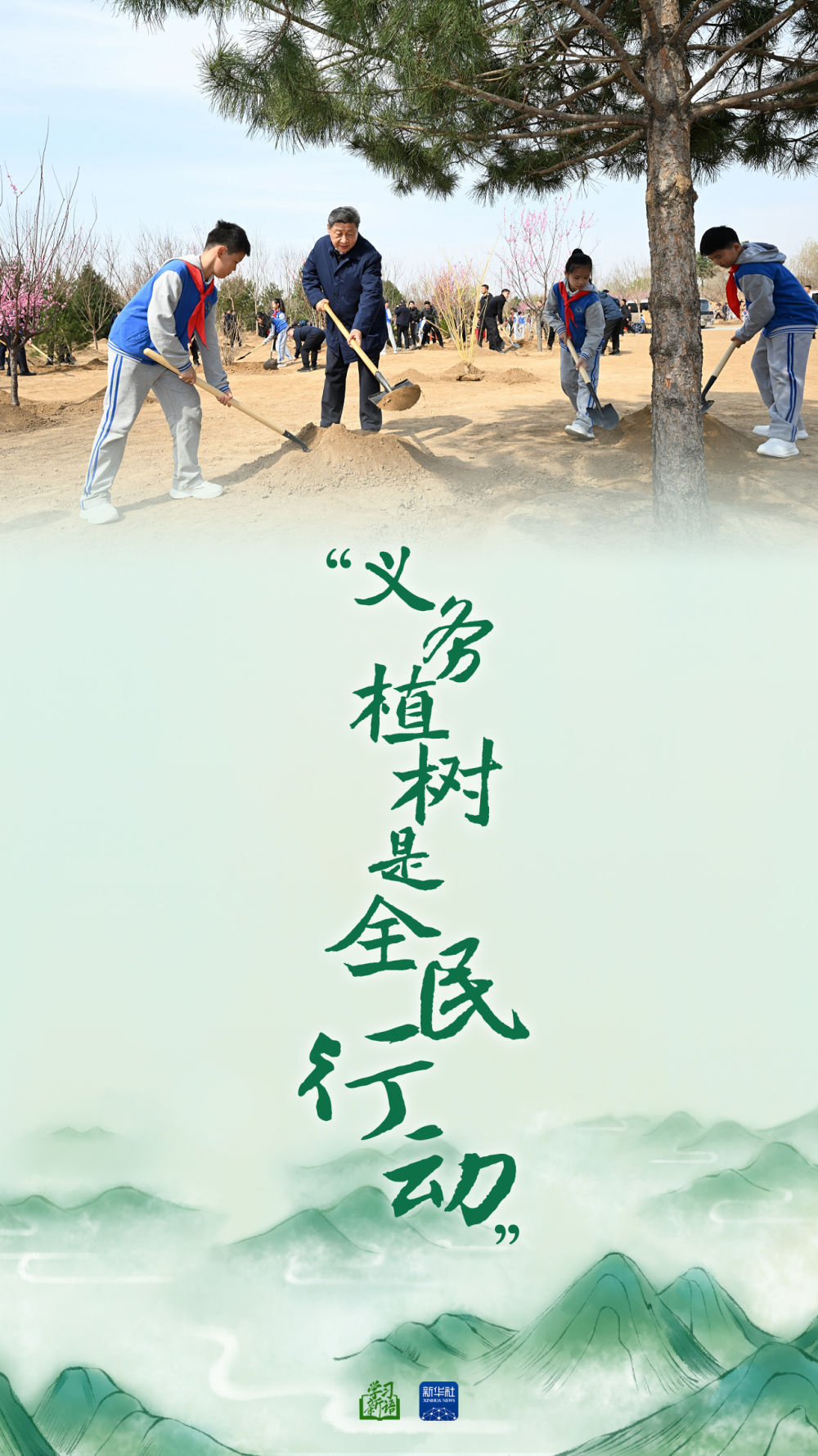 植綠護綠,習近平總書記年年履行與春天的“綠色約定”,身體力行,帶頭參加首都義務植樹活動。