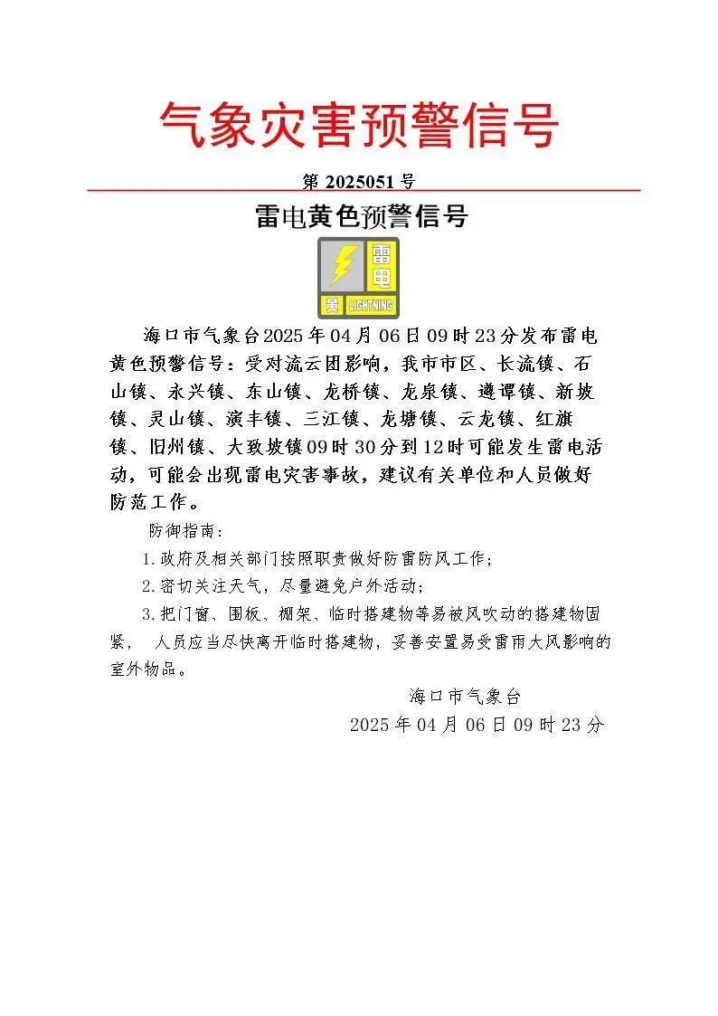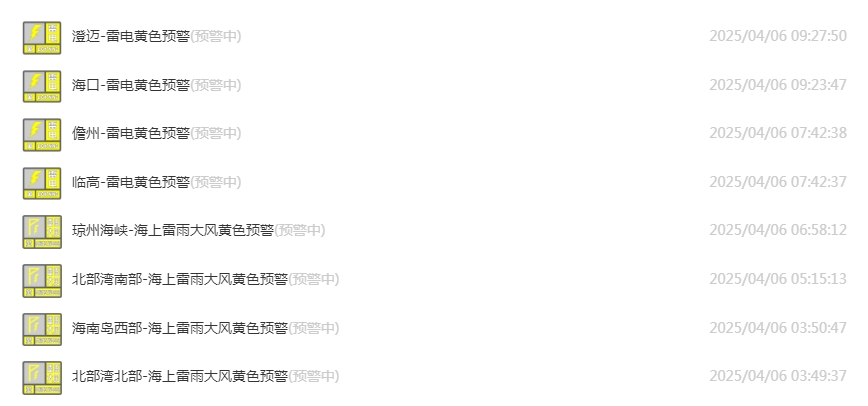 瓊州海峽海面7時30分到12時可能出現雷雨大風天氣,風力達7~9級,並伴有強雷電,建議有關單位和人員做好防範工作。