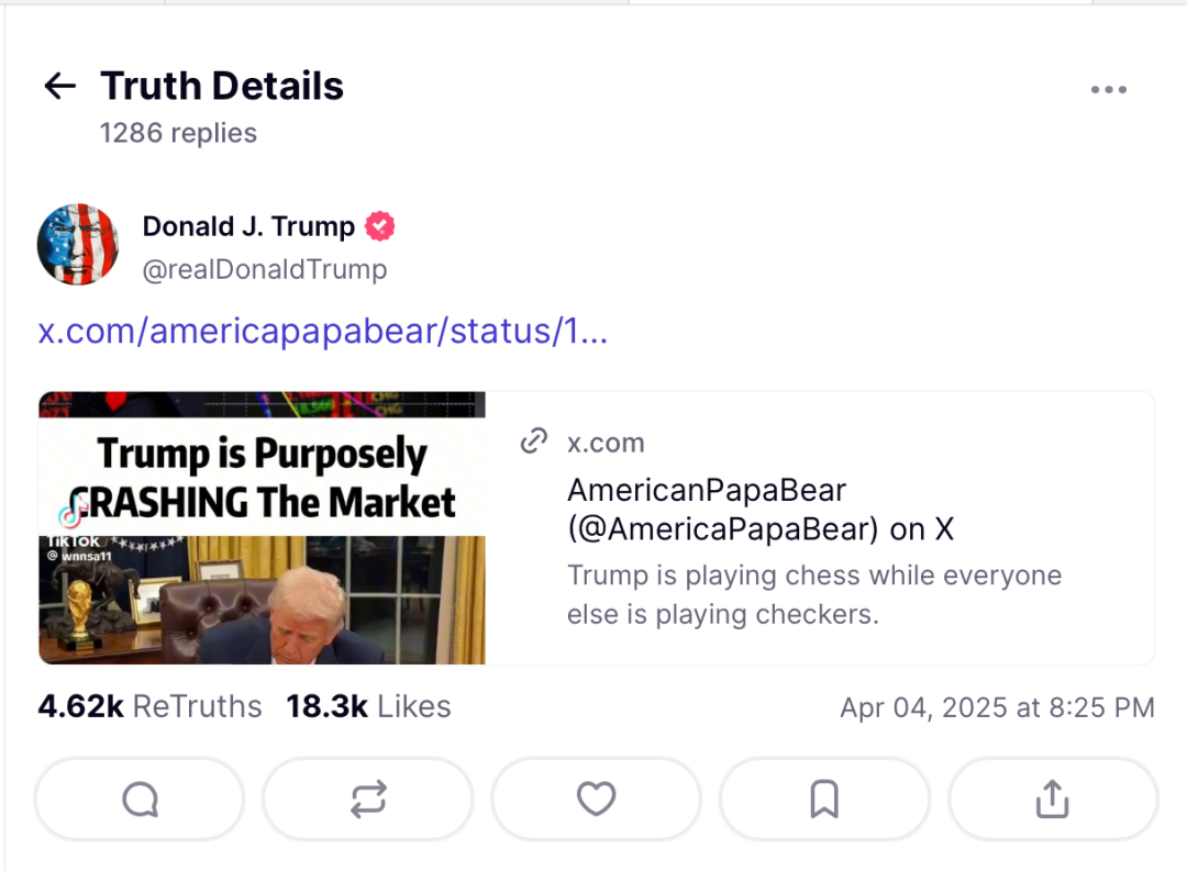 股市大幅下跌後,特朗普轉發了這樣一條視頻