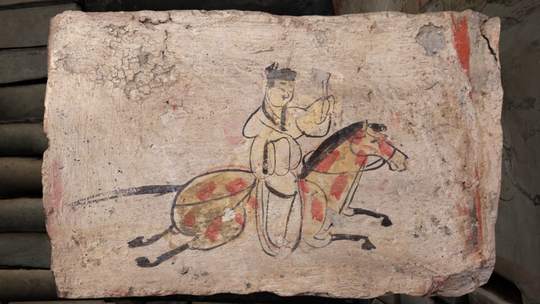 △魏晉“驛使圖”壁畫磚,甘肅省博物館藏。
