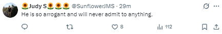 有網友則直言,“他太傲慢了,永遠不會承認任何事。”↓